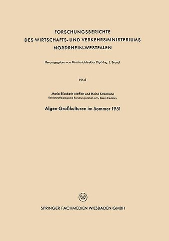 Gliederung.- Allgemeine Übersicht.- Versuchsanlagen und Kulturbedingungen.- Großkulturen.- Versuchskulturen.- Nährmedien.- Begasung.- Algen.- Temperatur.- Licht.- Verunreinigungen.- Handhabung und Verlauf der Großkulturen.- Ausbeuten der Großkulturen im Sommer 1951 (April bis November).- Untersuchungen über die Zusammensetzung der Algensubstanzen.- Trockengewichtsbestimmung.- Aschebestimmung.- Chlorophyllbestimmung.- Bestimmung der Gesamtlipoide.- Bestimmung des Proteingehaltes.