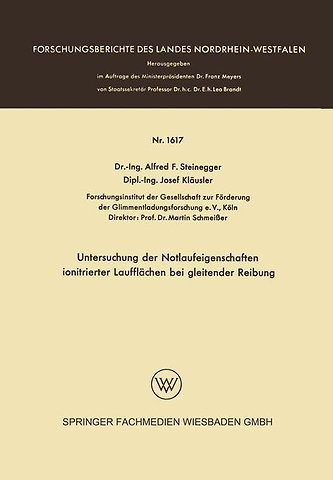 Die Anwendung der stromstarken Glimmentladung nach BERGHAUS (Ionitrieren) ermöglicht die Erzeugung von Nitrierschichten von hoher Härte und Zähigkeit. Die Versuchs bedingungen waren auf Probleme, die in der Praxis vorliegen, abzu stimmen, wobei zur Prüfung der Notlaufeigenschaften bei Abnutzungsversuchen auf einer AMSLER-Abnutzungsmaschine die Schmierung durch Wasserein wirkung beeinträchtigt wurde. Dies hat eine kurzzeitige, hohe Reibungsbean spruchung und eine hohe Abnutzung der Laufflächen zur Folge; es ergaben sich bei den Untersuchungen folgende Ergebnisse: Durch eine Ionitrierung beider Laufflächen einer Versuchspaarung kann eine wesentliche Ver besserung des Abnutzungsverhaltens verglichen mit einsatzgehärteten und lJergüteten Reib flächen erzielt werden. Diese Verbesserung drückt sich in einem wesentlich späteren Anstieg der Reib zahlen nach Beginn der Wassereinwirkung aus; die Standzeit erhöhte sich bei ionitrierten Laufflächen auf das anderthalb- bis sechsfache gegenüber den Aus gangszuständen. Auch die Vergleiche der Gewichtsverluste der Probekörper er geben für ionitrierte Laufflächen eine Verbesserung in der gleichen Größen ordnung. Diese Verbesserung tritt besonders bei hohen Beanspruchungen und bei einsatz gehärteten Paarungen in Erscheinung; sie wird durch die metallo graphische Auswertung bestätigt und ergänzt, wobei gleichzeitig die große Form beständigkeit der ionitrierten Probekörper heraus sticht. Dabei mußten für die Ionitrierung teilweise ungünstige Vorbedingungen in Kauf genommen werden. Die Anwendung dieser Erkenntnisse in der Praxis ergab eine mindestens ebenso große Steigerung der Standzeiten und bestätigte somit eindrücklich die durch die Ionitrierung erzielte Verbesserung des Abnutzungsverhaltens und die weitgehende Reproduzierbarkeit der Laborversuche.