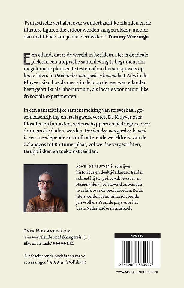 Een eiland is de wereld in het klein. Het is de ideale plek om een utopische samenleving te beginnen, megalomane plannen te testen of hersenspinsels op los te laten. In De eilanden van goed en kwaad laat Adwin de Kluyver zien hoe de mens in de loop der eeuwen eilanden heeft gebruikt als plekken voor natuurlijke én sociale experimenten.