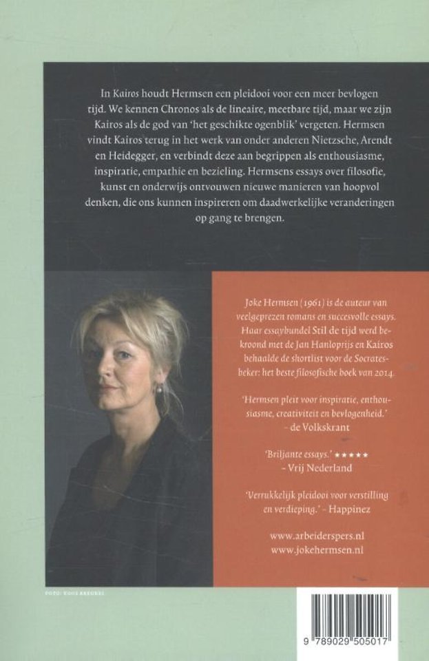 In Kairos houdt Hermsen een hartstochtelijk pleidooi voor een meer bevlogen tijd. We kennen Chronos als de lineaire, meetbare tijd, maar we zijn Kairos als de god van 'het geschikte ogenblik' vergeten. Hermsen vindt Kairos terug in het werk van o.a. Nietzsche, Arendt, Bloch, Benjamin en Heidegger, en verbindt deze aan begrippen als enthousiasme, inspiratie, empathie en bezieling. Hermsens essays over filosofie, kunst en onderwijs ontvouwen nieuwe manieren van hoopvol denken, die ons kunnen inspireren om daadwerkelijke veranderingen op gang te brengen.