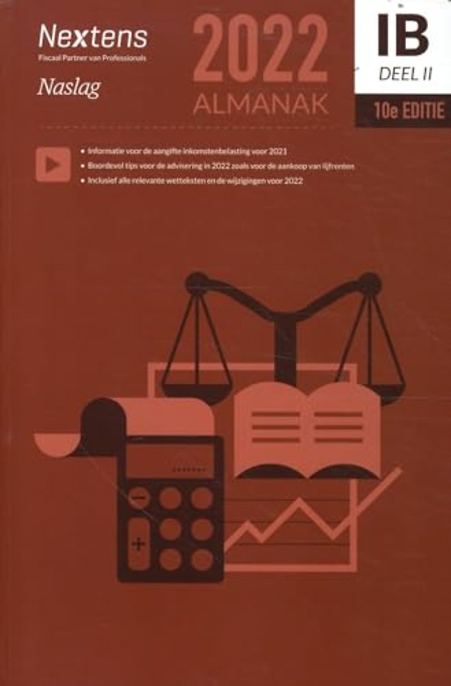 De IB Almanak is al jaren een vertrouwde uitgave voor de (belasting)adviseur, ondernemer en andere (professionele) gebruikers. De almanak geeft houvast aan deze gebruikers. Dat geldt als zij op voordelige en verantwoorde wijze zelf aangifte inkomstenbelasting 2021 willen doen of als zij voor anderen deze aangifte willen verzorgen.