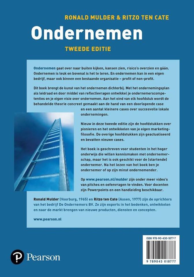 'Ondernemen' brengt de kunst van het ondernemen dichterbij. Met het ondernemingsplan als leidraad en door middel van reflectievragen ontwikkel je ondernemerscompetenties en je eigen visie over ondernemen. Aan het eind van elk hoofdstuk wordt de behandelde theorie concreet gemaakt aan de hand van een doorlopende case en een aantal kleinere cases over succesvolle lokale ondernemingen.