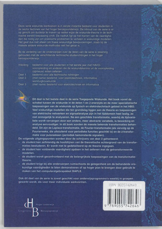 Veel wiskundige modellen die ten grondslag liggen aan de theorie en toepassingen van elektrische netwerken en signaalanalyse zijn in het tijddomein heel lastig, zo niet onmogelijk te analyseren. Na een geschikte transformatie, waarbij de tijdvariabele wordt vervangen door een andere meer abstracte variabele, is bewerking en analyse eenvoudiger. Het boek is zowel geschikt voor onderwijsprogramma's waarbij in groepen gewerkt wordt als voor meer individuele werkvormen.