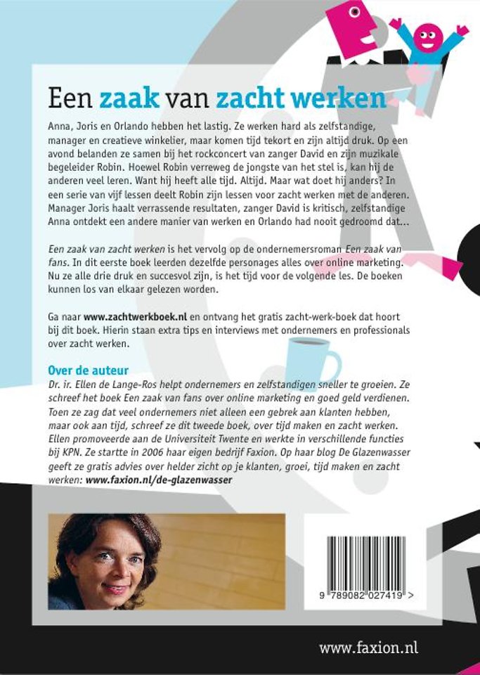 'Een zaak van zacht werken' is het vervolg op de ondernemersroman 'Een zaak van fans'. In dit eerste boek leerden dezelfde personages alles over online marketing. Nu ze alle drie druk en succesvol zijn, is het tijd voor de volgende les. De boeken kunnen los van elkaar gelezen worden.