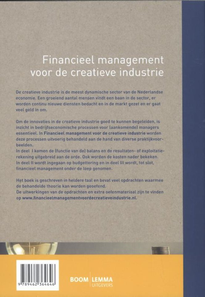 Om de innovaties in de creatieve industrie goed te kunnen begeleiden, is inzicht in bedrijfseconomische processen voor (aankomende) managers essentieel. In Financieel management voor de creatieve industrie worden deze processen uitvoerig behandeld aan de hand van diverse praktijkvoorbeelden.