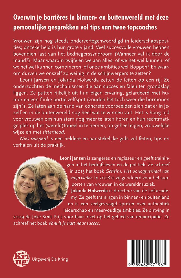 Leoni Jansen en Jolanda Holwerda zetten de feiten op een rij. Ze onderzochten de mechanismen die aan succes en falen ten grondslag liggen. Ze putten rijkelijk uit hun eigen ervaring, gelardeerd met humor en een flinke portie zelfspot (zouden het toch weer die hormonen zijn?). Ze laten aan de hand van concrete voorbeelden zien dat er in jezelf en in de buitenwereld nog heel wat te winnen valt. Het is hoog tijd voor vrouwen om hun stem nog meer te laten horen en hun rechtmatige plek op het (wereld)toneel in te nemen, op geheel eigen, vrouwelijke wijze en met sisterhood.